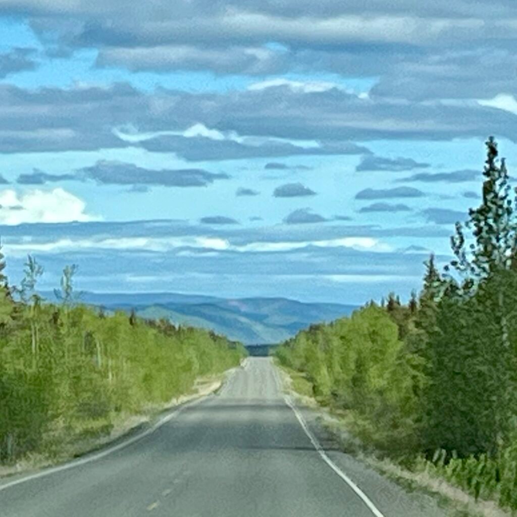 A red fox, just out of frame on the right, we passed shortly before arriving at Dawson City. It happened, we have 20 witnesses. Also, we passed a large-ish black bear a while back but did not have cameras ready. 🤦🏼♂️