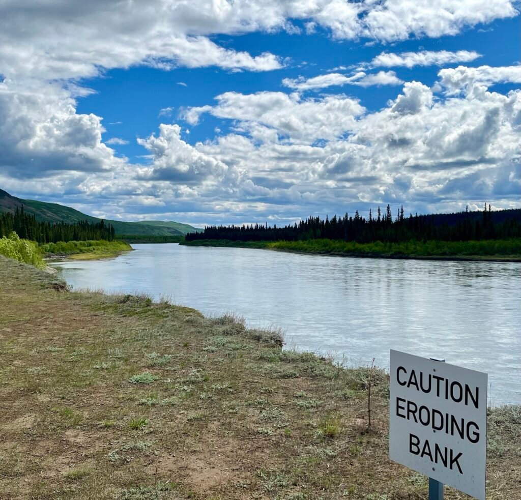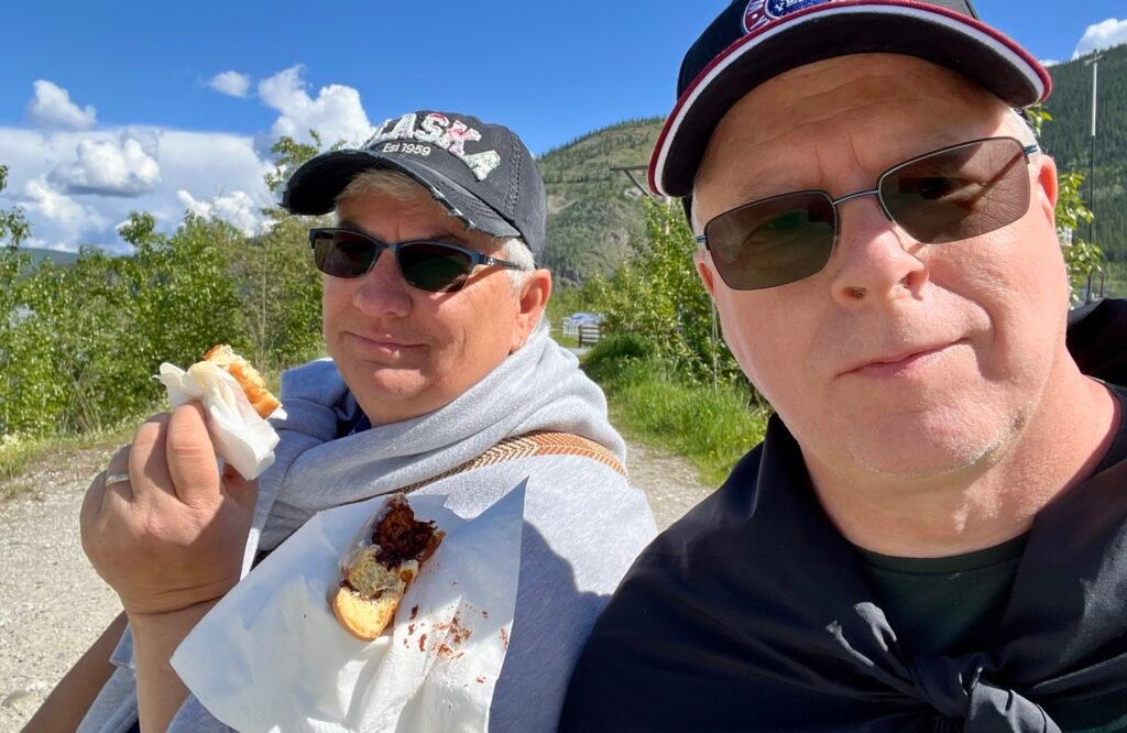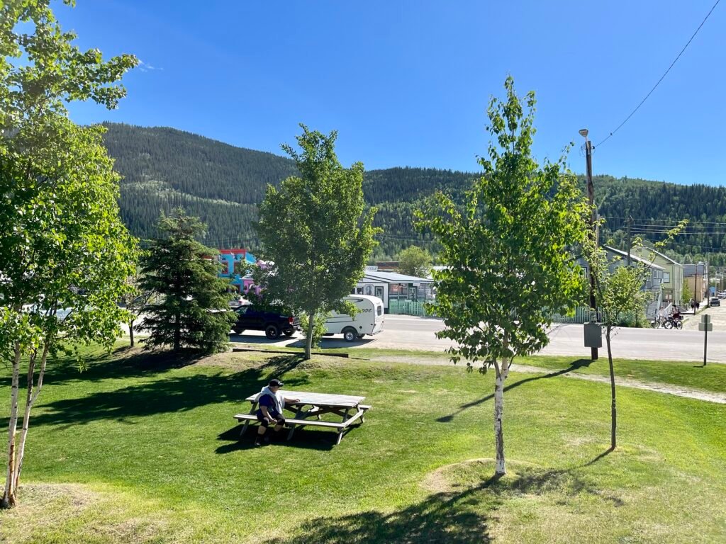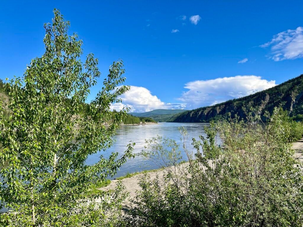 Another rest stop for bathrooms and snacks, by the Yukon River in Carmacks, YT. Named after George Carmack, who owned a trading post nearby and a coal mine. A few years later, George (or his wife, it’s unclear which) and two others discovered gold in a creek near Dawson City and staked Discovery Claim. That’s the event that started the Klondike Gold Rush.