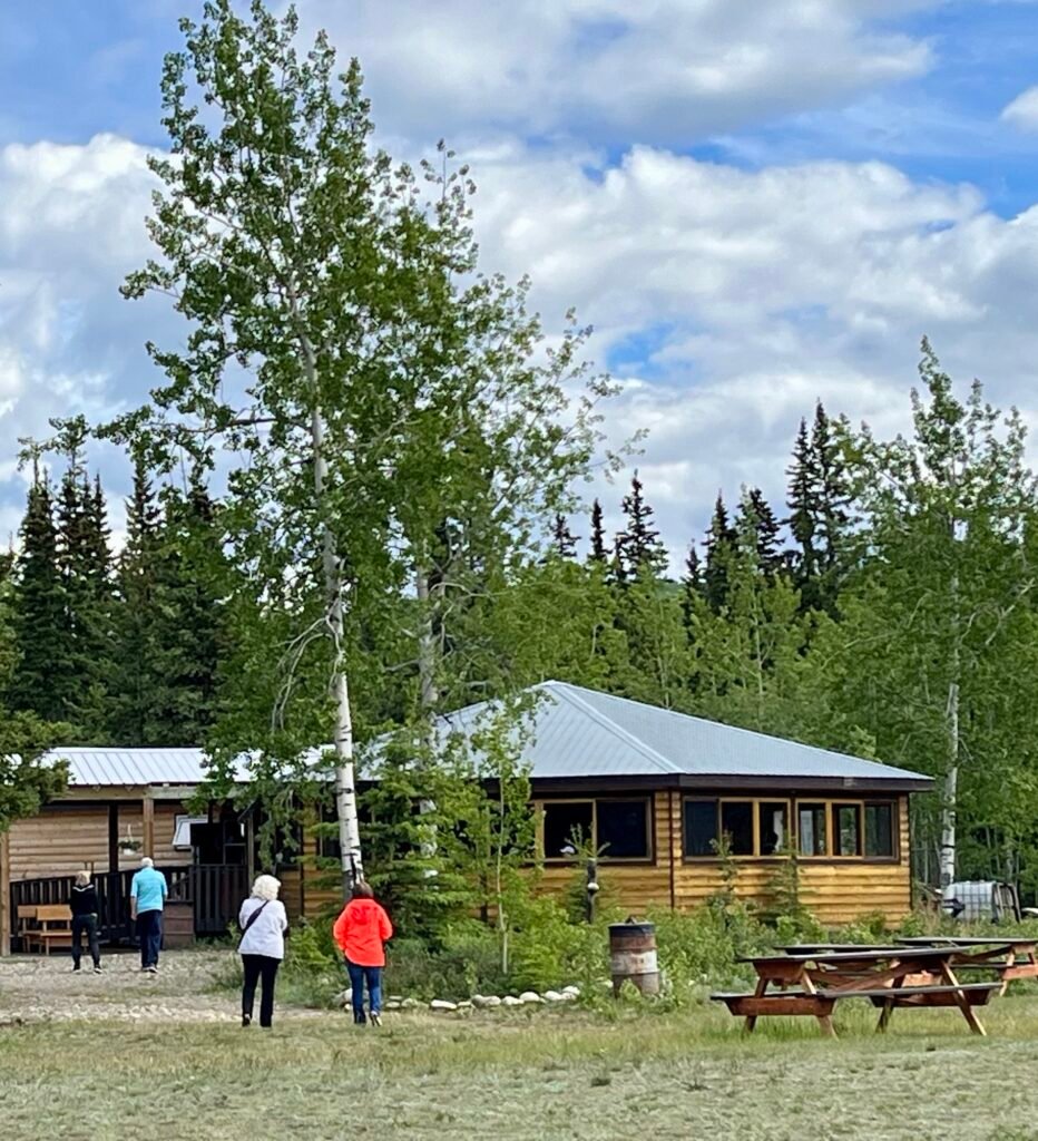 We departed Whitehorse at 8:00am, heading up the Northern Klondike Highway. Not that it all isn’t as picture worthy as yesterday’s run, because it is, but it was much like this and variations on the same. Submitted for your listening enjoyment, a song we sang several times on the bus: Rocks and Trees by The Arrogant Worms.