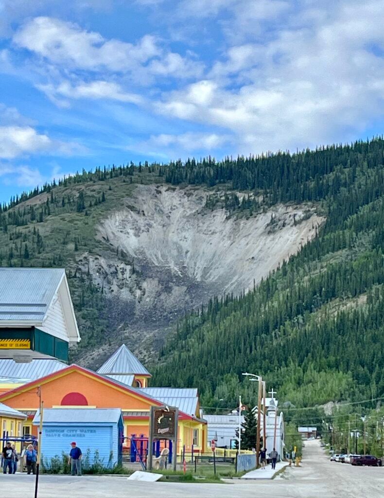 That’s no mountain, that’s a space sta… sorry, yes, that’s a mountain, and the scar on the side is named Moosehide Slide. The landslide happened roughly 1700 years ago, and became the landmark that let the Stampeders know they made it to Dawson City.