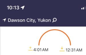 You truly step back in time here. Very Old West vibe. Heck, the nearest Tim Hortons is six hours away (without burning vans and road construction delays) in Whitehorse. This pic was taken at 9:15pm. Sunset at 12:31am then twilight until 4:00 sunrise. Seriously. I peeked outside at 3:00am and it was light enough to read a book.