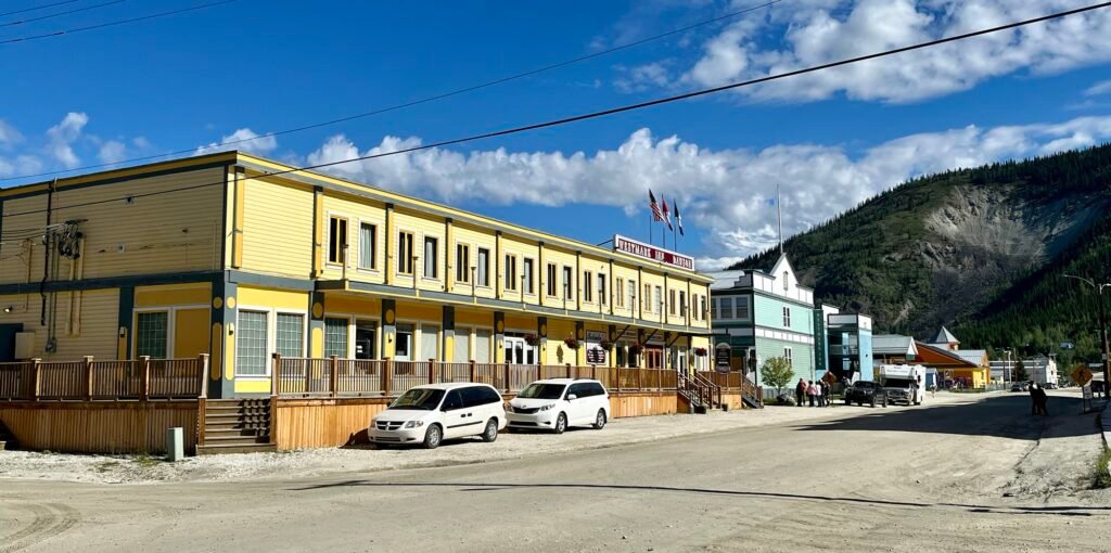 Our destination, Dawson City, Yukon Territory, sitting about halfway between Skagway on the Pacific and the Arctic Ocean, is our northern-most stop at just 2 degrees latitude from the Arctic circle. It was also the epicenter of the Yukon gold rush from 1896 to 1899. Not a very long run, eh?