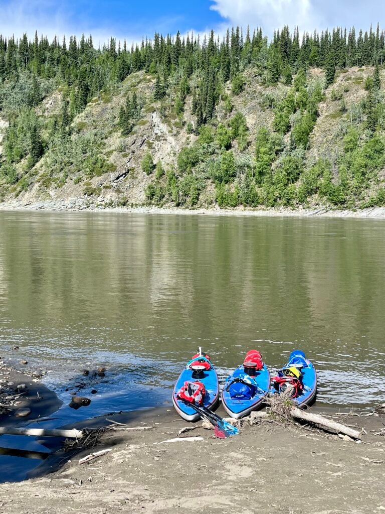 Kayakers taking a break from their trip down the Yukon. Which is north during this stretch.