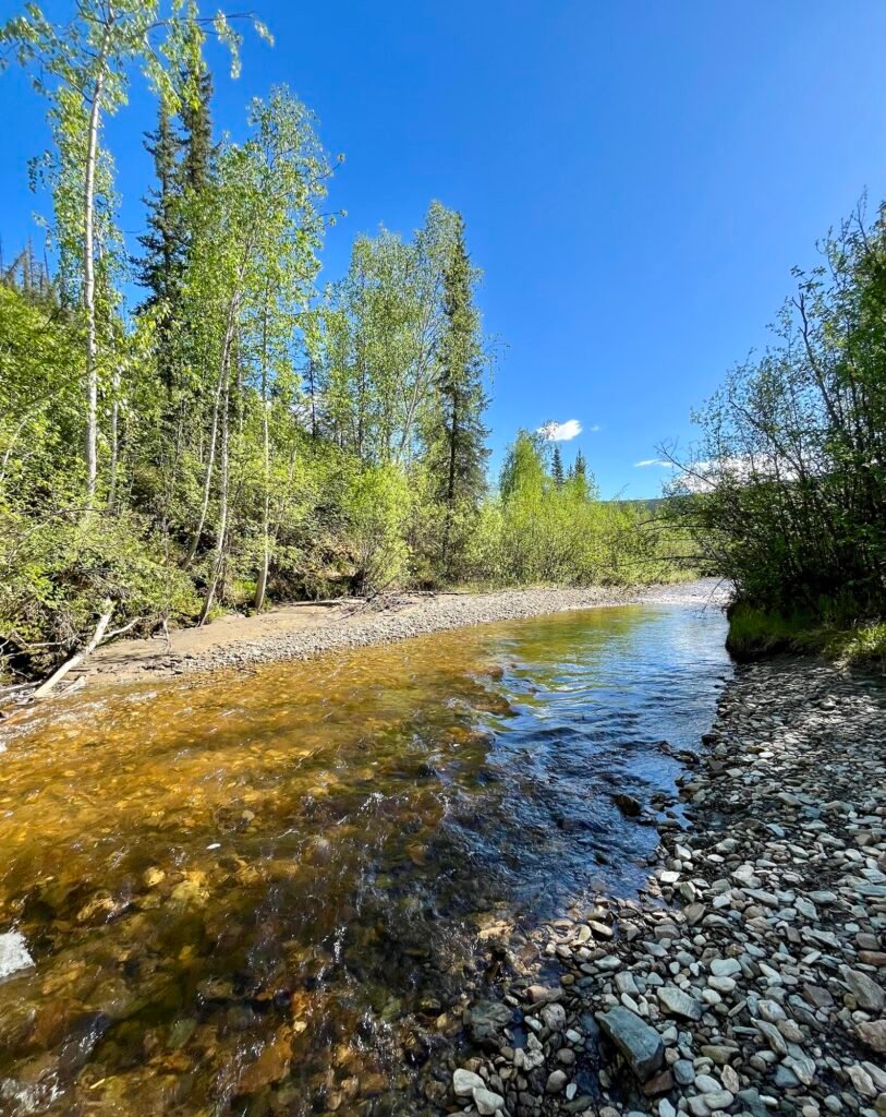 Walked along the Yukon River, just downstream from where it’s joined by the Klondike River. Gosh, the dogs that live here leave hand-sized paw prints and scary big piles of scat. 🧐