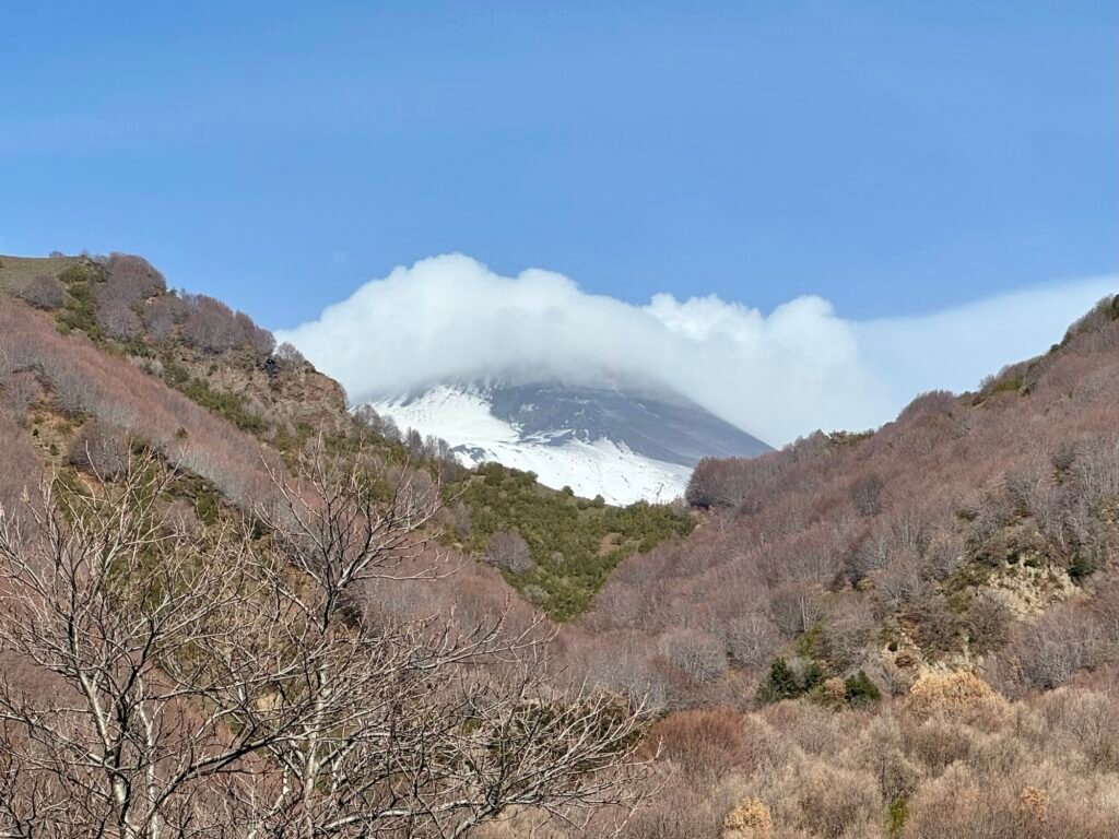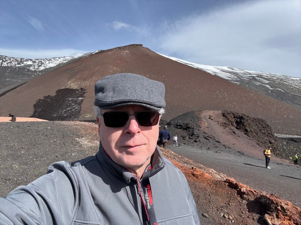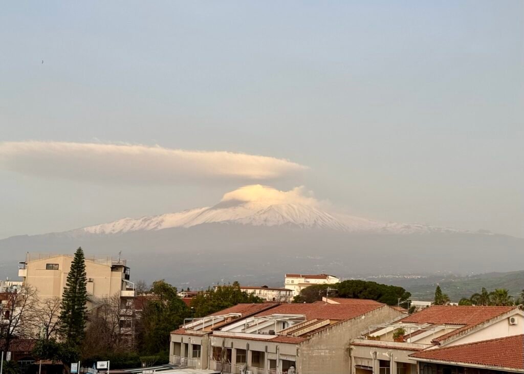 Mongibello, or “Beautiful Mountain”, dominates the sky in the southeast region of Sicily. The pic above is from our hotel room, about 14 miles from the main craters, rising 11,165 feet above the Mediterranean Sea.