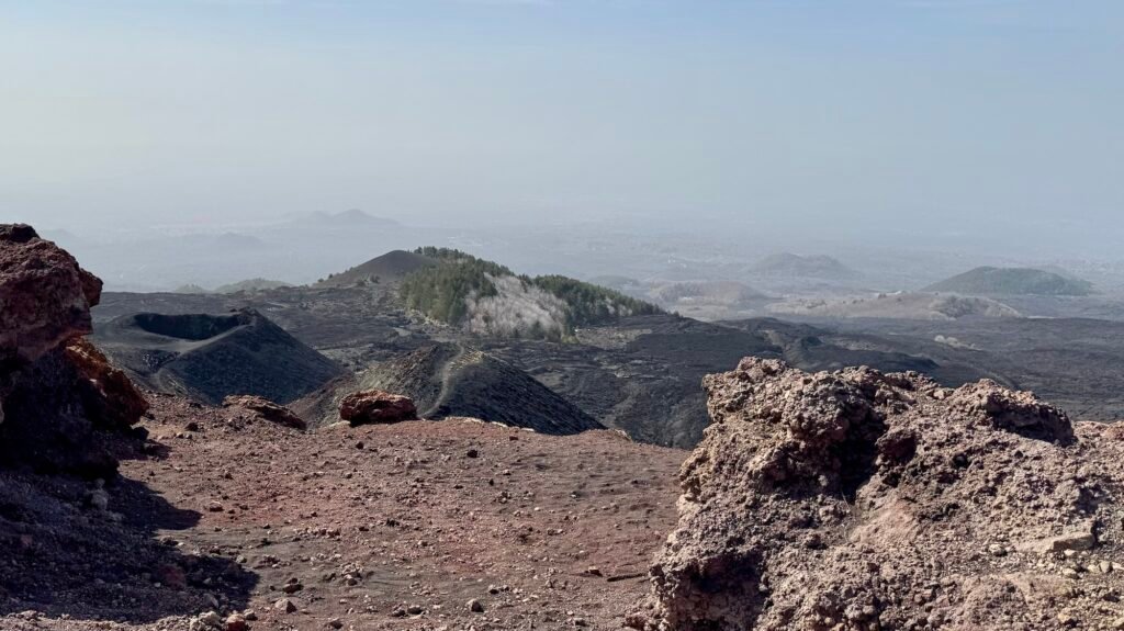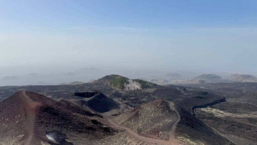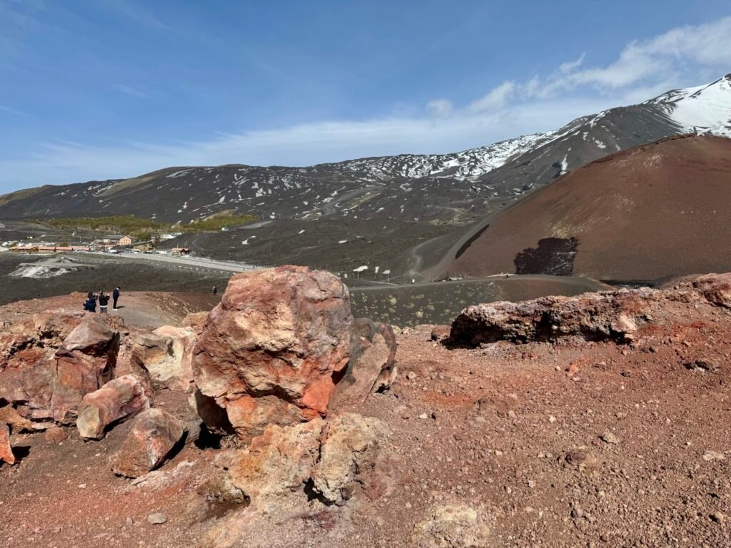 This vent… note the people on the floor of the crater for a sense of its size, is just a minuscule piece of the Etna landscape. You can stroll around the rim, maybe a quarter mile walk.