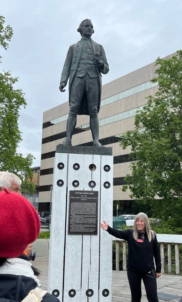 We’re at Captain James Cook Monument. In 1778, this chapter of the great explorer’s adventures had he and his crew looking for the Northwest Passage between the Pacific and Atlantic oceans. They didn’t find it, but the 180 mile long Cook Inlet now bears his name.