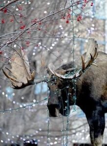 Moose are part of life throughout Alaska. In the early 2000’s, a moose named Bruce frequented resident’s yards in the winter months looking for crab apples, and occasionally left with souvenirs like kid’s swings and Christmas lights tangled in his antlers.