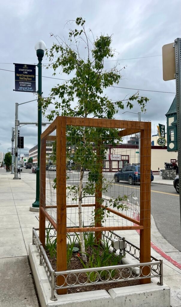 Moosance! In winter, the moose diet leans towards willow trees. They’ll eat the bark from large willows, but devour small trees like this all the way to a stump, wherever they can be found. Like in the city. So, the city builds these cages to discourage grazing there.